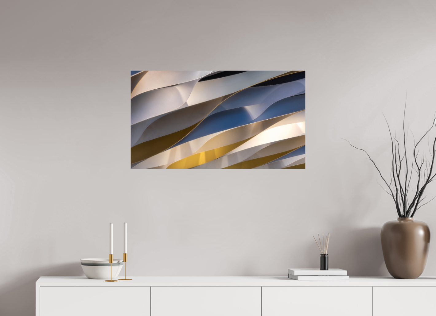 This abstract photograph shows a close-up of the ceiling of Place des Arts in Montreal. The undulating, ribbon-like structures in white, gold, and blue create a dynamic interplay of light and shadow. The architectural lines and textures create a mesmerizing composition that simultaneously exudes movement and tranquility. A powerful image for modern interiors and lovers of urban abstraction. This abstract composition depicts the permanent light installation ORB on the Esplanade of Place des Arts in Montreal. The sculpture consists of 90 mirrored discs that together create an undulating, almost cosmic form. The changing light creates an ever-changing visual rhythm—a play of reflection, depth, and movement. A powerful work of art that invites contemplation and wonder.